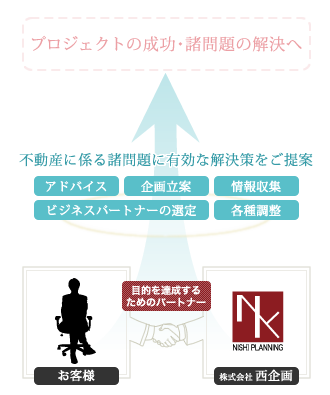 西企画では、収益性と不動産価値の最適化を図るためのマネジメントを行っております。ご所有不動産の有効な活用方法をご提案いたしますので、ぜひ一度ご相談ください。